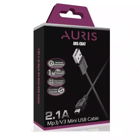 Auris CB47 Mp3 & V3 Kablo, müzik sistemleri ve taşınabilir cihazlar arasında yüksek kaliteli ses iletimi ve şarj bağlantı kablosudur.