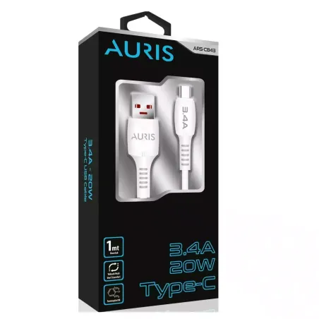 Auris 3.4A 20W Type-C Kablo, hızlı şarj ve veri aktarımı sağlayan dayanıklı bir kablodur. 20W güç desteği ile cihazlarınızı güvenli ve verimli bir şekilde şarj etmenizi sağlar.