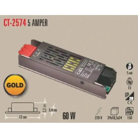 • Cata 5 Amper 12 Volt Slim Led Trafosu